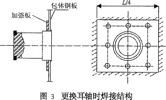 針對更換耳軸的方案,以剪應(yīng)力校核耳軸焊縫強(qiáng)度